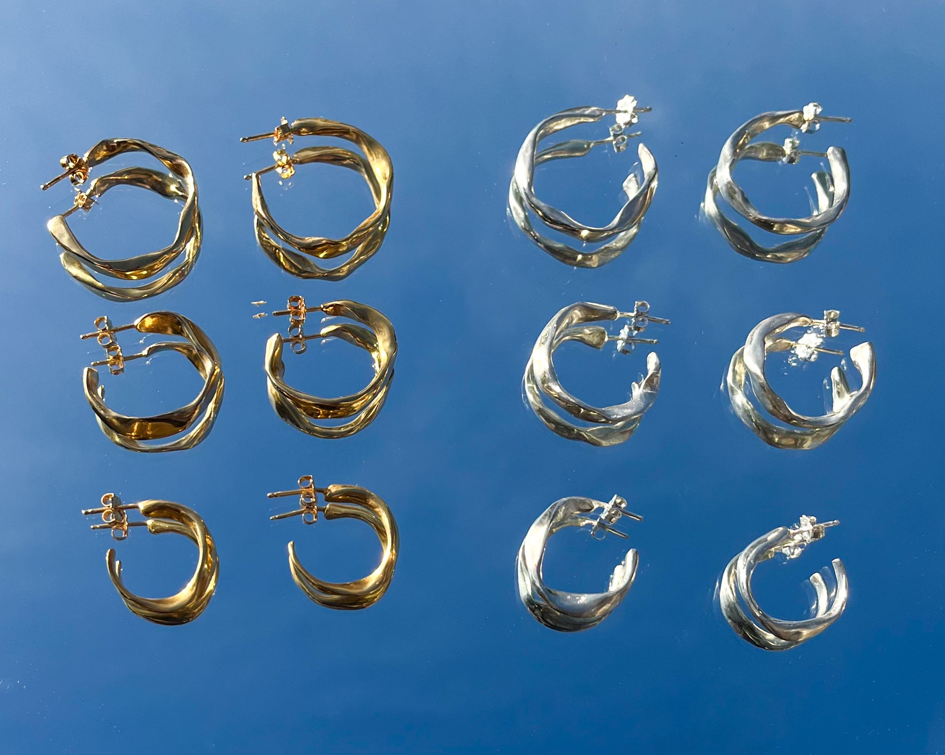 the diane hoop was designed in honor of a beloved sister, and embodies a spirit of timeless elegance and enduring love. each hoop is first carved by hand in wax, then cast in your choice of solid .925 sterling silver or 14k gold, ensuring a piece that is uniquely yours. made to order, please allow 4-6 weeks <3